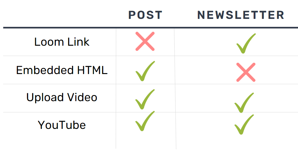 My preferred method, however is to use my YouTube channel to add a video to the post. Upload the Loom video to your YouTube channel and then copy the url to that YouTube video and add it as a YouTube element to your Post in Ghost. The YouTube video is presented in a nice way in both the Post on the website and in the newsletter, and it enlarges your visibility via Youtube.